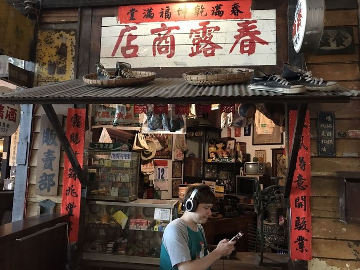 復古不退流行的皮革用料,搭配復古商店也很合適,不過擋在商店門口在常理來說應該都會被趕走XD
