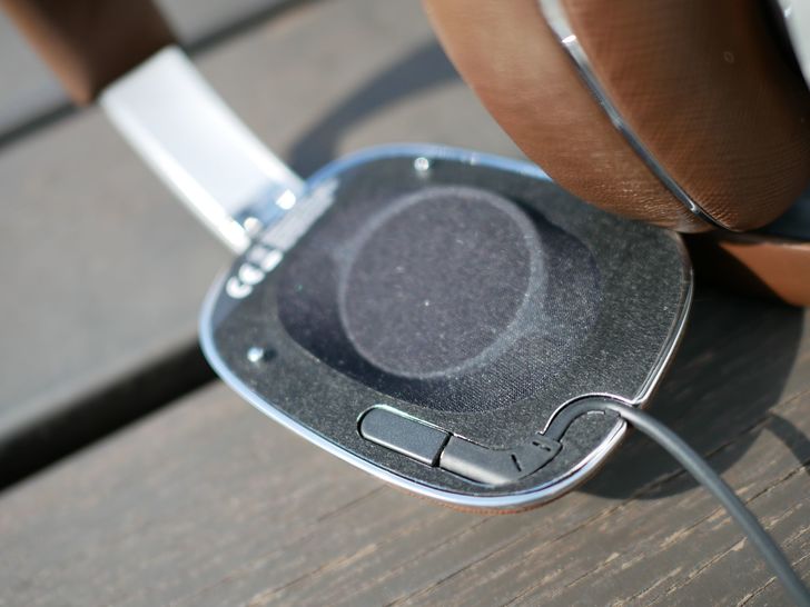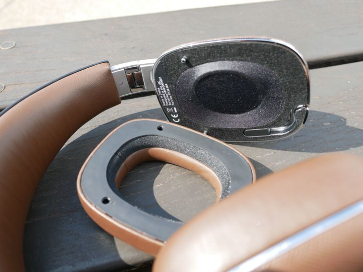拆開耳罩後,可以看到耳機採用40mm (1.6in)大單體更能表現低音厚實,單體的擺放朝向耳朵傾斜,讓聲音更具空間感,而導線也是可以輕鬆更換因應不同場合。
