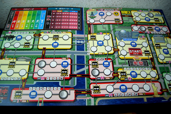 地圖場景包括富士電視台、自由女神公園、科學館、台場站、海濱站、網球公園等等,範圍非常廣,也讓你跑的方向選擇更多。除此之外,背面翻過來就是夜間版,場景一樣但顏色為夜景色調,與電視上的遊戲方式非常似。