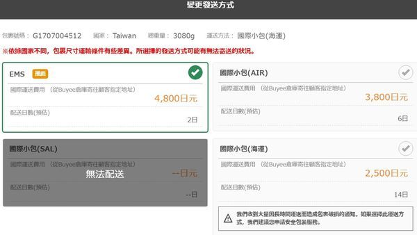運費部份有一些小技巧,像是不趕時間的話就可以選擇海運,在重量部份也不要選太重的,若能買一些體積不大又較輕的物品為佳。