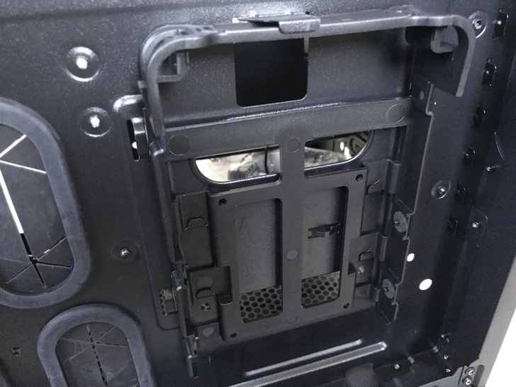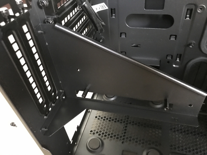 且原本以為多這個架子後,安間會變得擁擠許多,但其實不會,因為右邊的5.25與 3.5安裝槽都有簡化過,所以其實在安裝主機板時反而沒那麼卡,加上這塊轉接架只要三顆螺絲就可以拆下來根本不用擔心,這設計真的有用心!