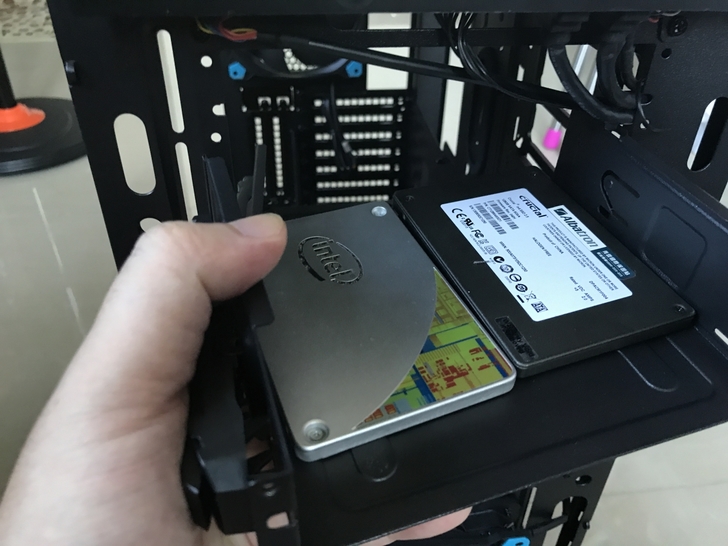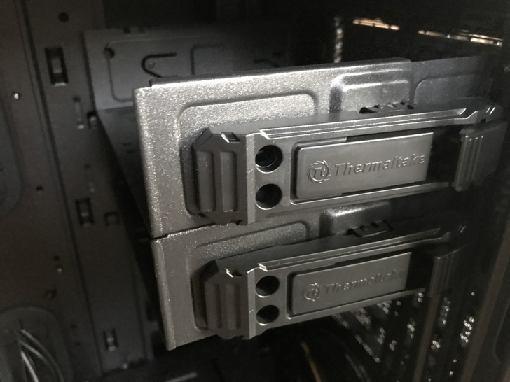 擁有兩個5.25安裝槽,使用的是快拆式卡榫的設計,且這5.25安裝槽還有貼心的設計就是可以從前方面板拆下來,然後單槽就可以安裝兩顆2.5吋SSD!