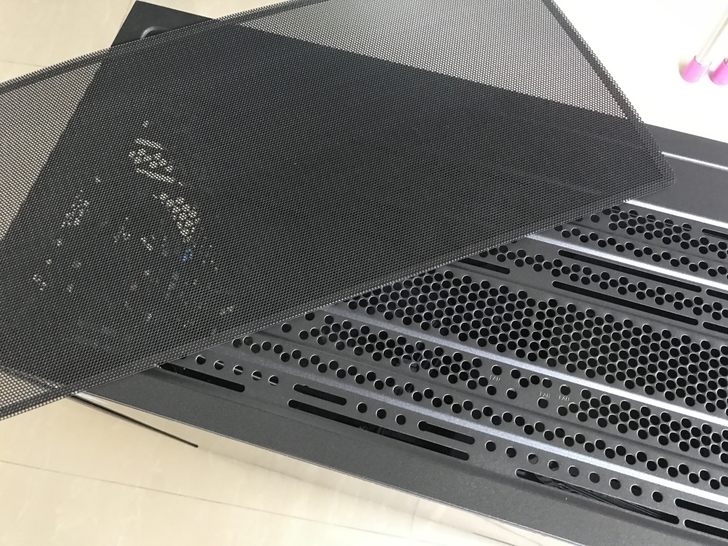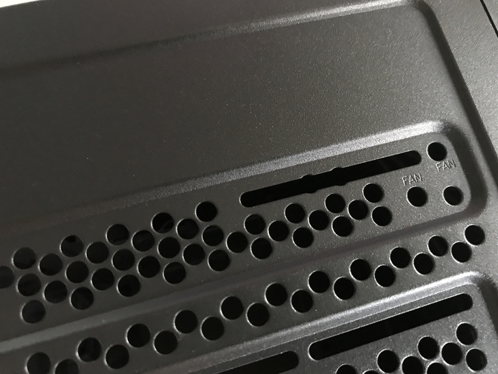 數不清的多孔打洞設計,仍在風扇安裝地方標示出螺絲孔的位置