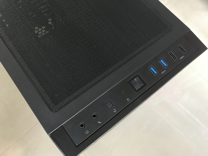 前置USB是設計在上方、有2個USB 2.0與2個USB 3.0,加上耳麥插孔與電源和重置鈕