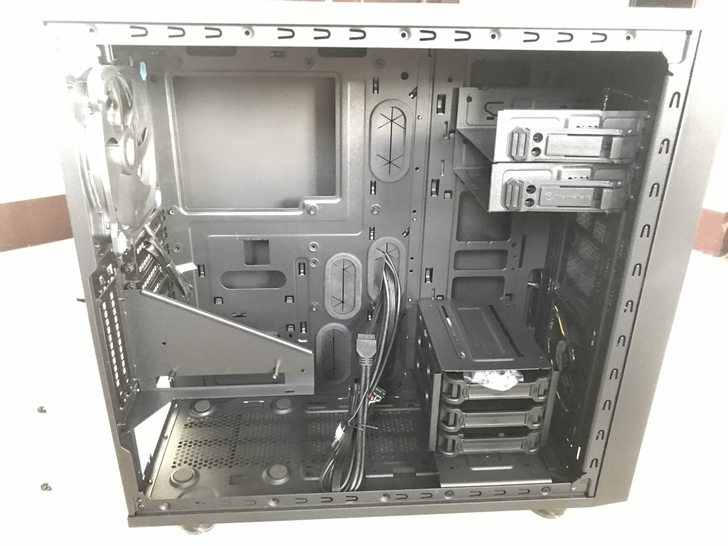 另一側拍照給大家看看,注意到他這側的保留空間特別再去翻說明書,這裡居然可以掛三個3.5吋硬碟安裝槽,若有多顆硬碟的朋友真的可以考慮這咖,不過傷腦筋的是不知這硬碟安裝槽有沒單賣,一個多少啊?