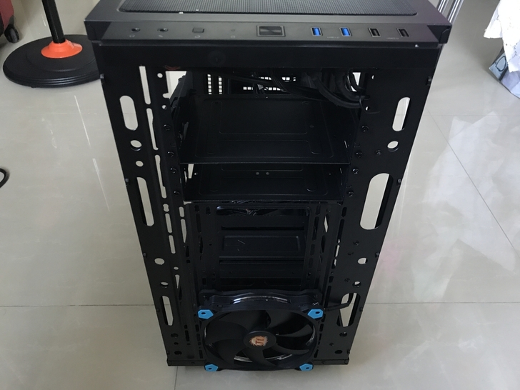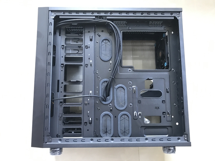 內部長這樣,很明顯看得出來和一般的機殼不太一樣,尤其是左邊多了一個架子,那是讓人轉接顯卡展示用的,看起來滿好看的
