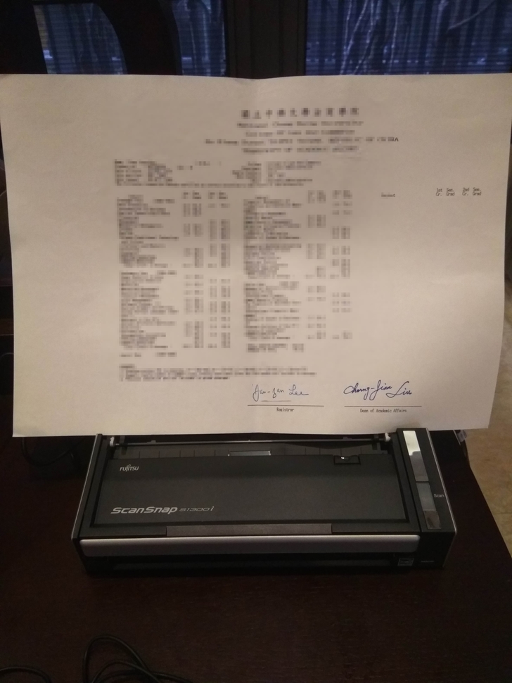 ▲一些證書有彩色相片與文字,也可以一起掃,可以看到FUJITSU ScanSnap S1300i連油墨的污點,也一併掃進去了。
