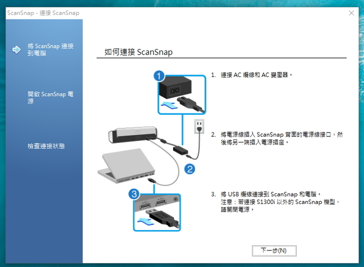 ▲接著接上電源與USB跟電腦連結,依照步驟即可輕鬆的使用FUJITSU ScanSnap S1300i了。