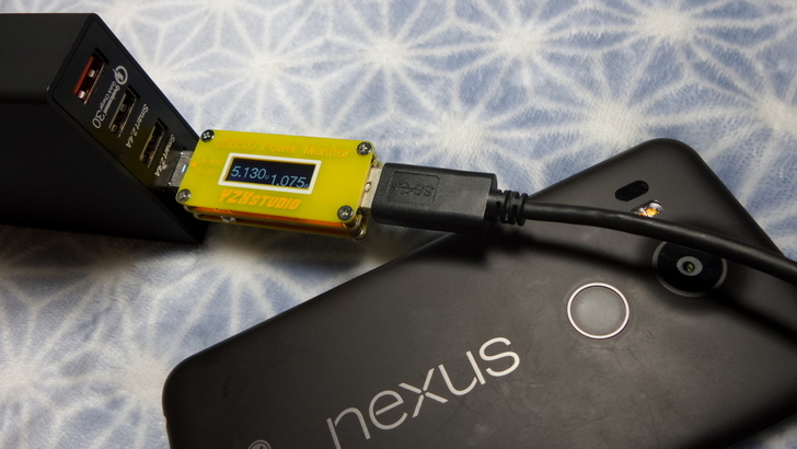 【▼】實際測試,以LG nexus連接於五孔桌面充的Smart 2.4A的接孔上進行充電,電壓電流約5.13@1.07A,尚未到達2.4A的上限。。