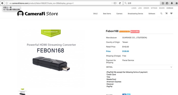 FEBON168免驅HDMI擷取卡(舊版的) 是在2013年底量產