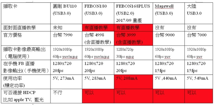 相較起來, USB3.0 FEBON180 UVC 免驅動程式hdmi擷取卡,功率稍微高一點