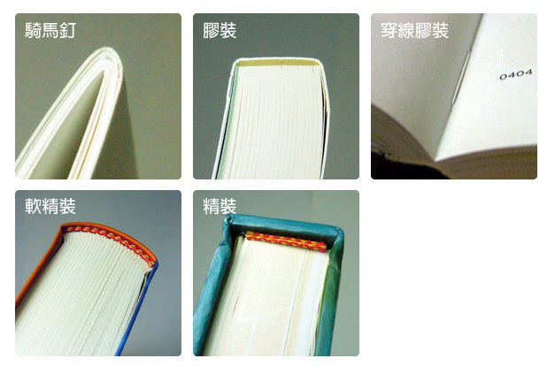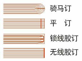 ▼一般超過 4 頁的印刷物,就必須選擇適合的裝訂方式以達到方便保存的目的,以下是幾種常見的裝訂方式及名稱