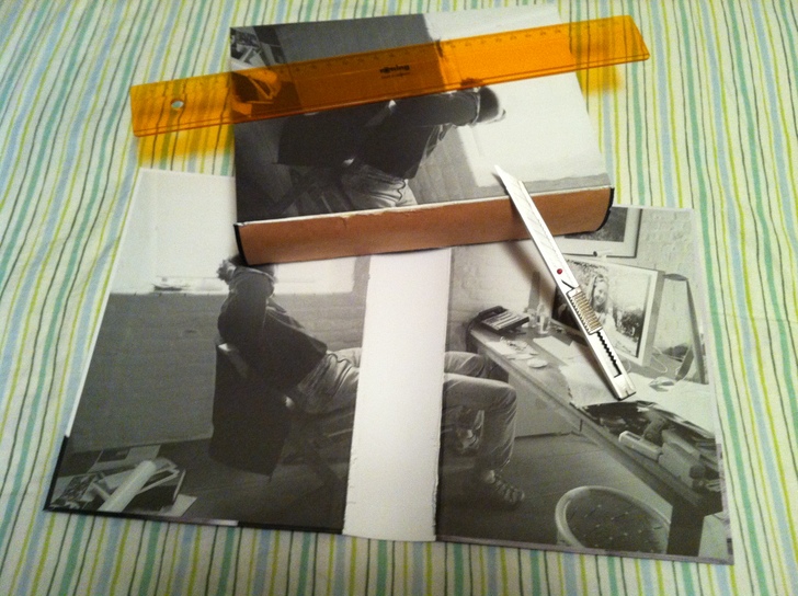 ▼依據裁切器允許的裁切厚度來分割(經驗多了就知道大概多厚),使用比較長的刀片從中間切割分開,而底下最好墊一張切割板,因為通常需要多切幾次才會斷開