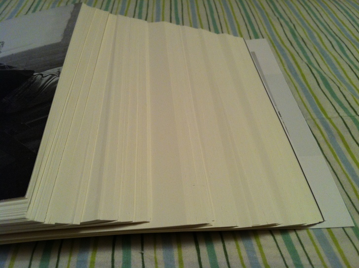 ▼為了避免殘膠造成卡紙,書本的紙張必須順一下,因此裁切完後檢視是否有殘膠很重要,看看是否有沒被分開的頁面