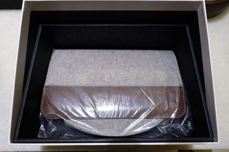 ▼收納包則是採用另一種Alcantara人造麂皮與Saffiano混搭的設計。Alcantara比較常見是使用在高階進口車的座椅上。