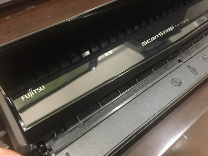 ScanSnap iX100前端設計了檔版,當桌面空間不夠時,可以讓掃描器從上方出紙,這個設計真的讓人覺得很貼心