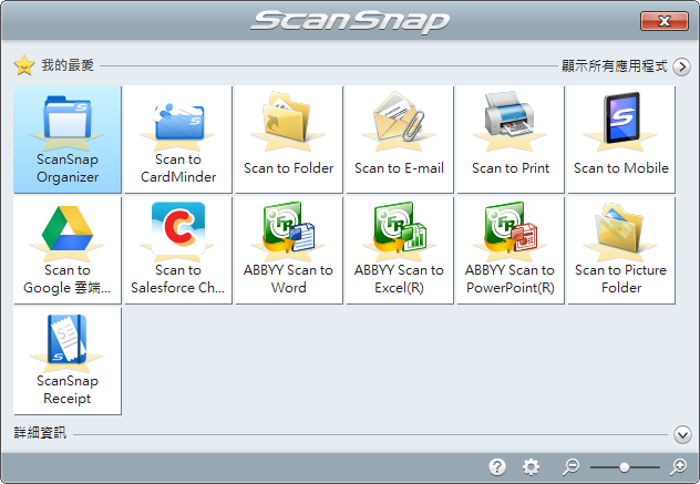 ScanSnap iX100的光碟內附上許多好用的軟體,好用的硬體也要配合強大的軟體才能發揮它的最大價值,透過這些軟體,掃描完成的檔案可以編輯、可以立刻發到E-MAIL、可以雲端列印、可以存到雲端硬碟共享、可以嵌入Word、Excel、PowerPoint等Office軟體,運用方式隨你選擇,絕對不光是掃描完畢就結束了,透過這些程式可以將掃描後的檔案作最有效率的應用