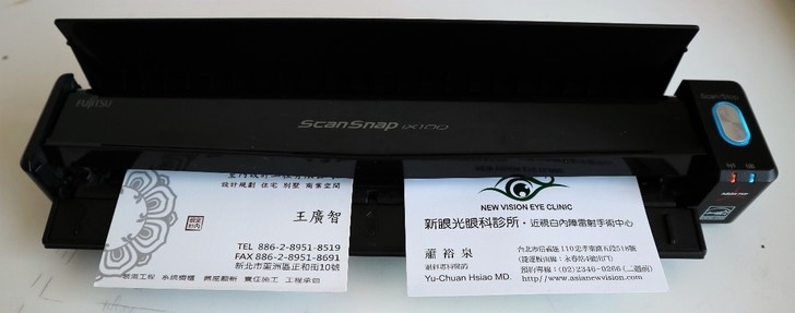 iX100最強的地方莫過於,同時可以放兩張較小的文件(如名片)一起掃描,出來的檔案還自動裁切成單張的影像,節省不少時間。