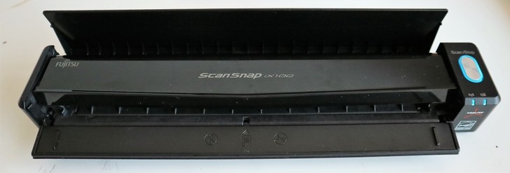 ScanSnap iX100使用方法非常簡單,只需要翻下艙蓋,電源就會自動開啟,掃描指示燈也亮起,將紙張放在艙口,按下按鈕,紙張就會自動送入,並實現掃描操作。此外,再打開頂端的艙蓋,就可以實現U型通道,紙張就能從頂部送出,節省桌面空間。