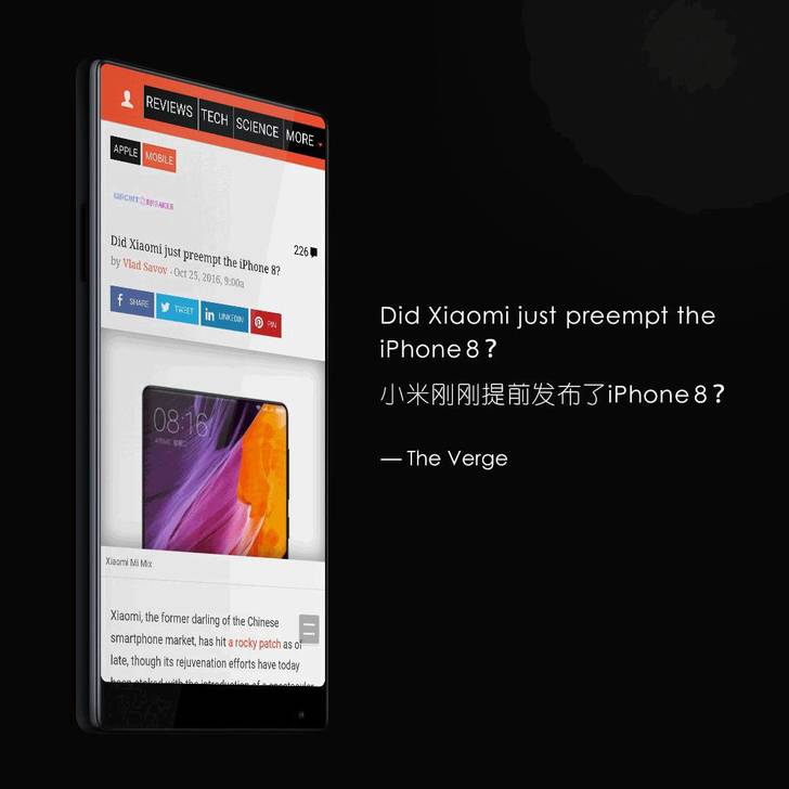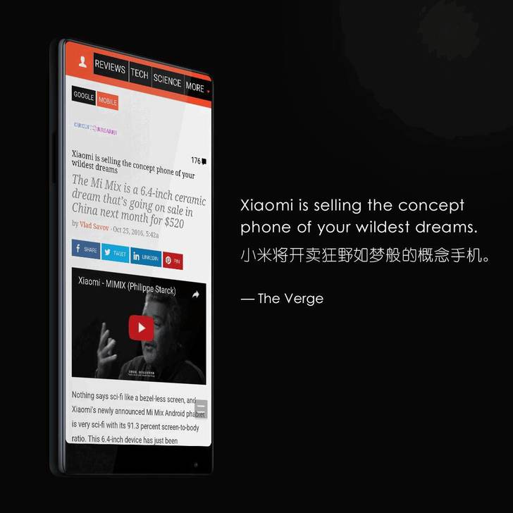 小米MIX 全面屏概念手機, 藝術品般工藝的背後,是對科技的不斷探索。 9月11日,小米MIX 2 新品發布會 全面屏2.0,一次趨向完美的進化,到時候見!