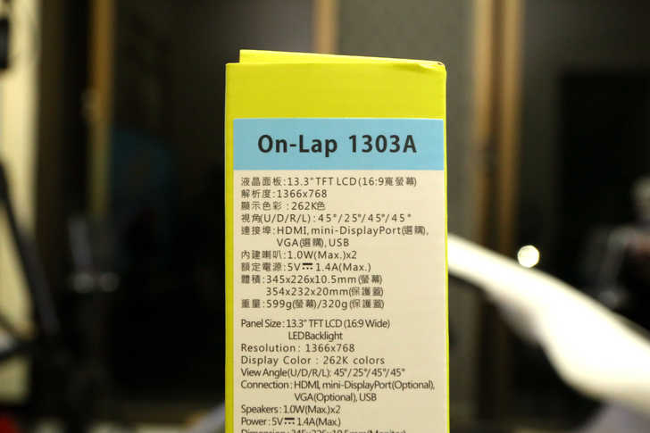本次選購的型號為1303A,解析度為1366*768,以一般13”筆電外接使用來說算是非常夠用,想要較高解析度的有1303H可以選擇,當然價格會比較貴就是了XD