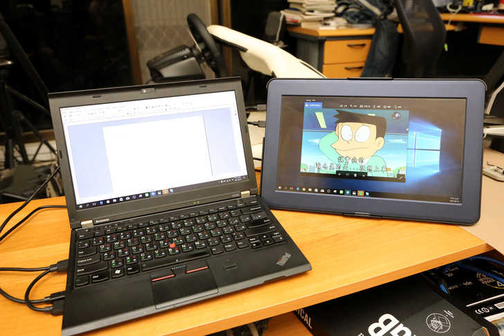 以自己現役的筆電 Thinkpad x230i 來說,外接輸出接頭有DP與VGA,所以兩條轉接線都有入手,接法可以參考下圖所示,電腦主螢幕可以變成主要作業畫面,ON-LAP 1303A 可當成是副螢幕來查詢資料使用,雖然說筆電已經使用了五年之久,但要做切換的視窗的動作還是真心覺得麻煩。