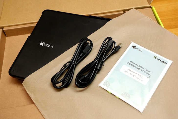 箱子內有說明書、影像傳輸線(HDMI)、USB供電線材,以及本次的主角1303A,而1303A則是還有附一個不織布保護套可以做使用。