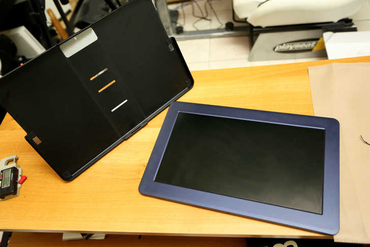 螢幕本體背面有Gechic的LOGO,並內建2個1w的喇叭分別在左右兩側。