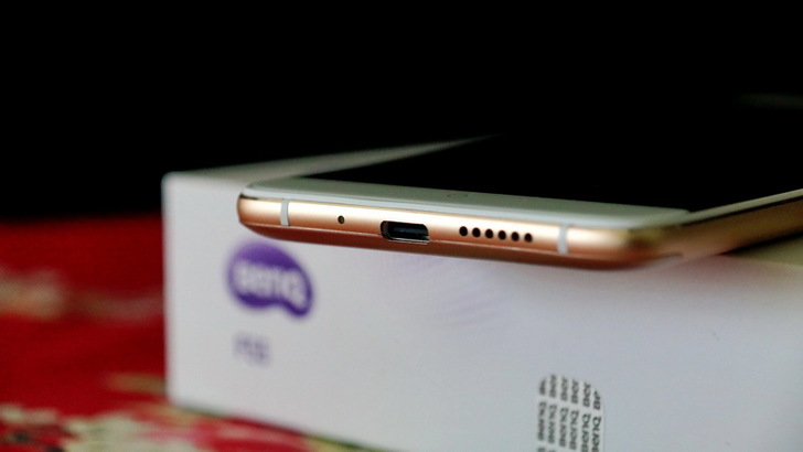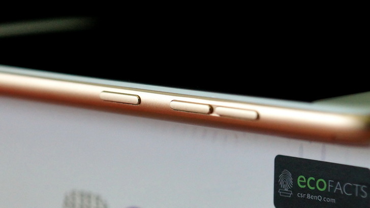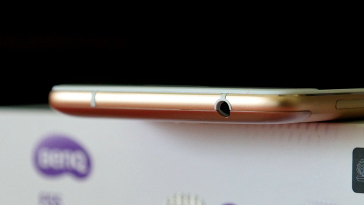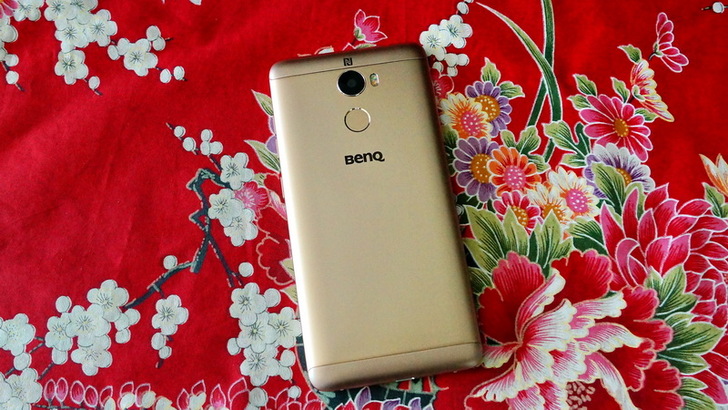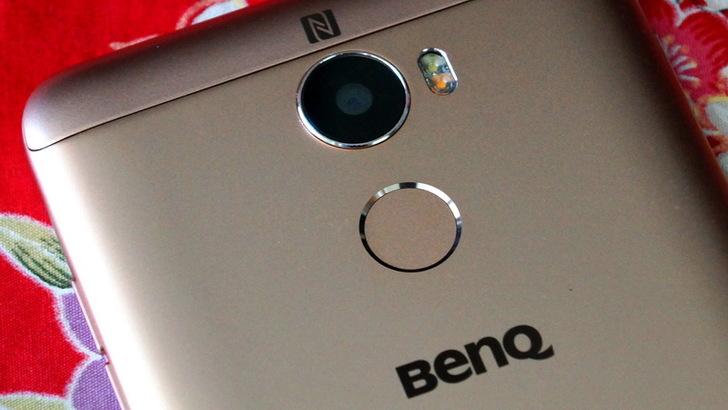 背面是傳統的三件式設計,中間是金屬背蓋,上下方兩片是塑膠,為何要用塑膠?因為金屬會遮蔽無線訊號啊,所以要有留塑膠的空間來接收無線訊號。中間的金屬的部份有個大大的BenQ Logo,Logo上方是Touch ID指紋辨識的地方,老實說我對指紋辨識沒有很大興趣,因為目前能用到指紋辨識的地方並不多,大多是解鎖銀幕而已。再上去則是主相機鏡頭(1600萬畫素,F2.0光圈)