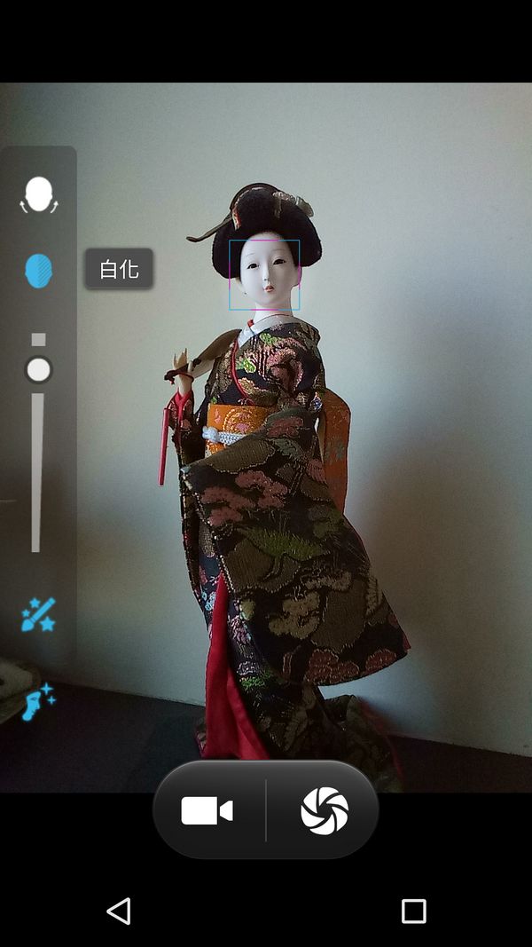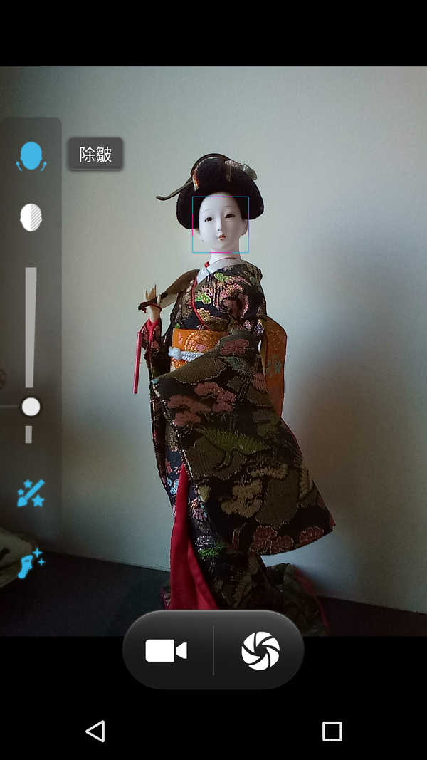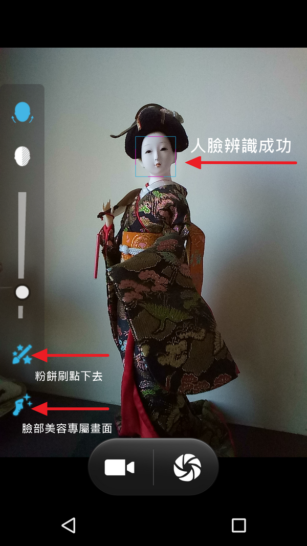一般的拍照其實並沒有什麼特點,如果沒有手動調整一些東西的話,抓起來就拍了,BenQ F55跟其他手機的內建相機一樣,是有不少調整的功能,曝光,場景,白平衡一應俱全,不過最值得介紹的是他們的臉部美容多面模式,講白了就是美肌模式啦。因為維克多本身不上相,本次拍攝過程也沒有名模支援,所以我以玩偶來取代。