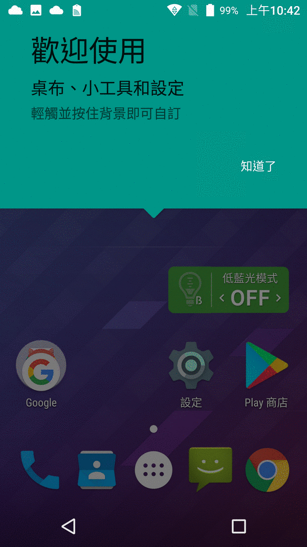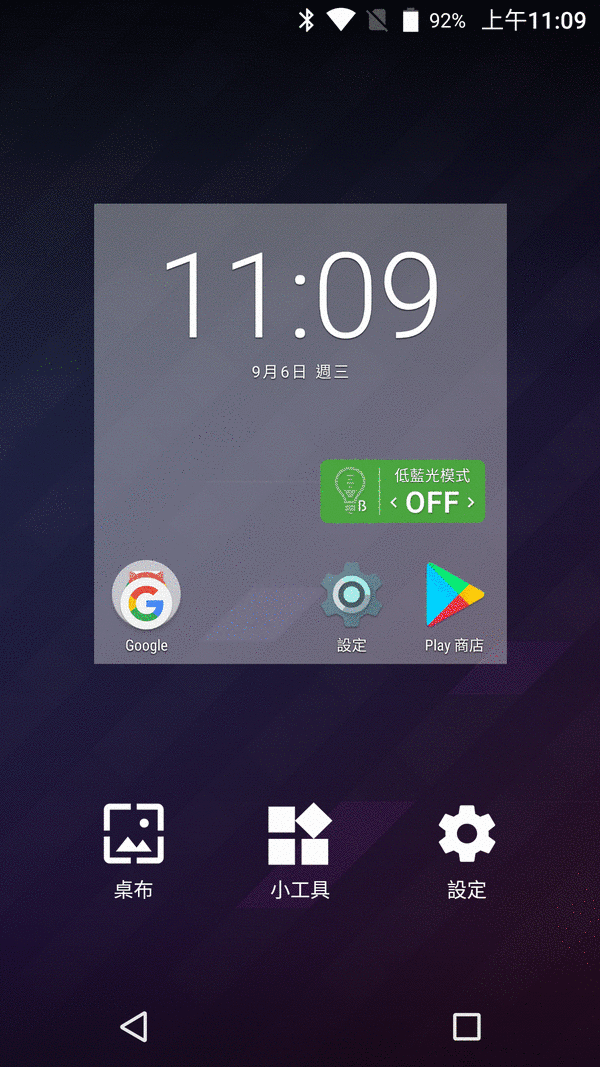 啊…..然後呢?一般來說,除了Google相關軟體應該還有其他APP才是啊,但是桌面上都看不到。我試著長按桌面空白處,叫出桌布,小工具與設定。