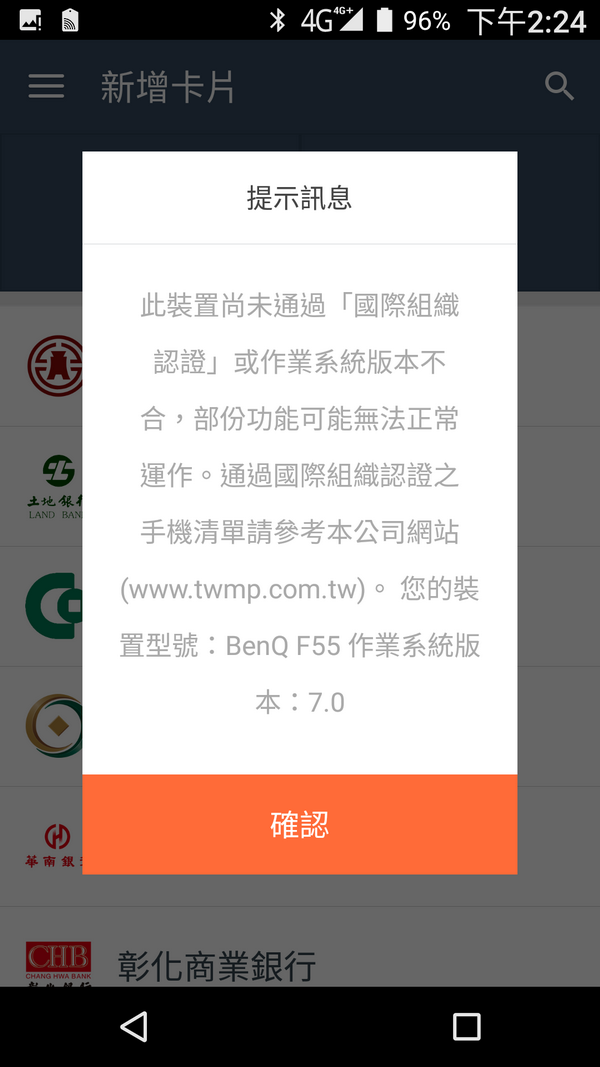 好奇心瞬間大爆發,也來安裝Friday電子錢包吧,如果不能使用,算是剛好,官方就明說未支援電子錢包了,如果運氣好可以使用,那就算我撿到啦。