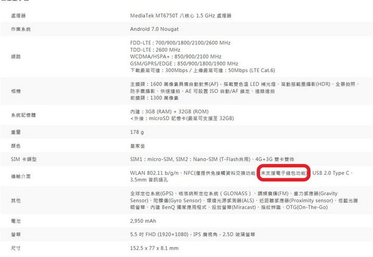 支援Android Pay與台灣Pay