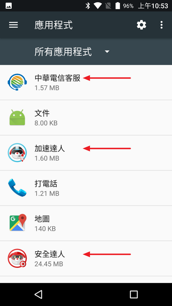 F55只有Clean Master 與 News Republic這兩個額外的APP嗎?我從設定裡的「應用程式」裡發現一個很神奇的地方,其實系統裡還有安裝一些有關中華電信的APP喔。但沒有在桌面上呈現出來。