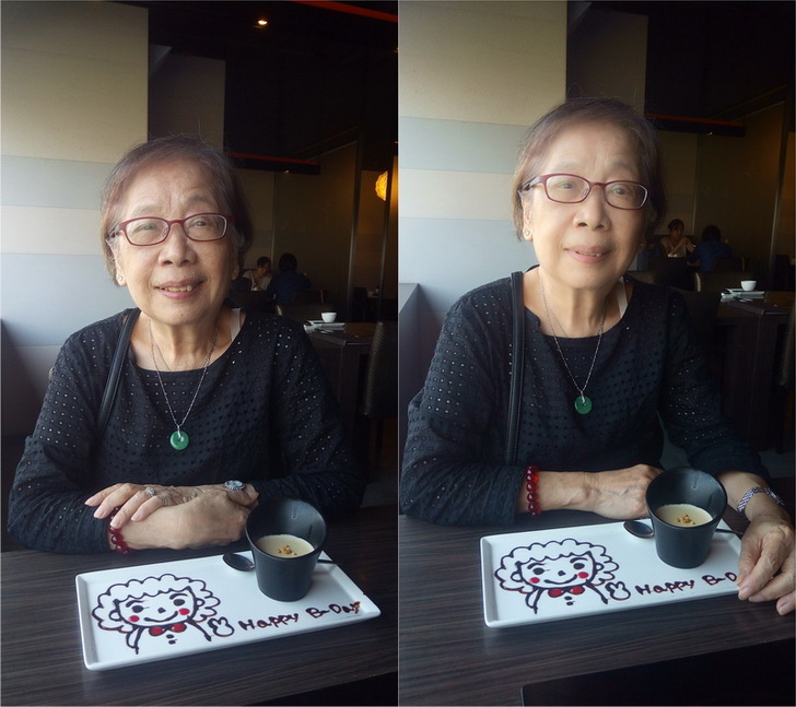 你可能會說,那是妹子正點,跟相機無關,好吧再來一張,這是維克多的老媽,左邊無修正,右邊啟動「臉部美容多面模式」,這樣總可以看得出差別了吧。 (維媽生日快樂!!)