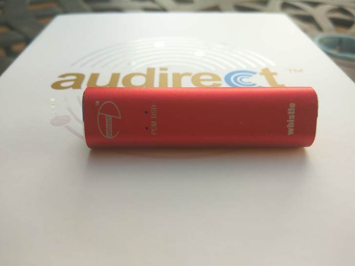 ▲來看一下Audirect Whistle,為一個三角體,其中一面有二個燈號,支援PCM與DSD格式,而從上述規格表,可知DSD支援到5.6MHz。
