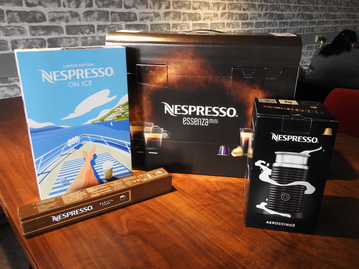 好大的手筆~有奶泡機、Nespresso Essenza Mini主機、及額外送的咖啡膠囊禮盒及一組限量膠囊組