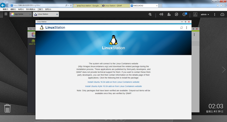▲ 執行 Linux Station (必須先安裝 Container Station)