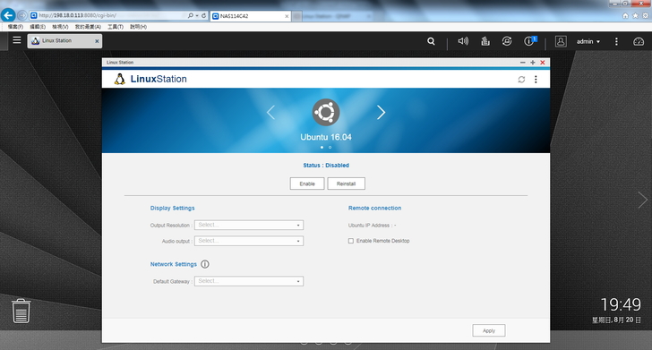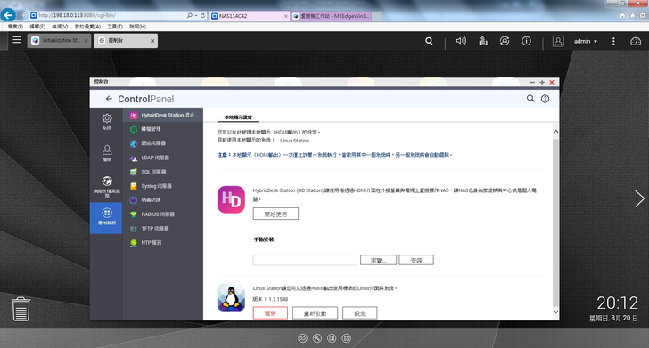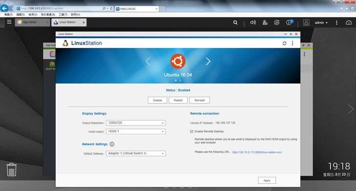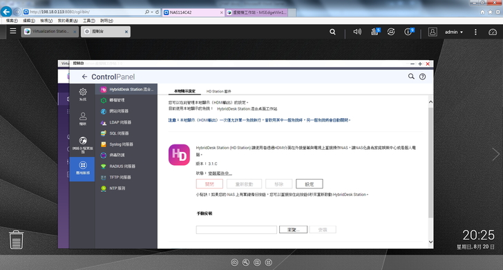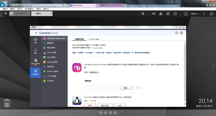 ▲ 再來準備啟用 HybridDesk Station 服務,可直接透過 HDMI 以及USB 鍵盤、滑鼠讓 NAS 變身成電腦來操作
