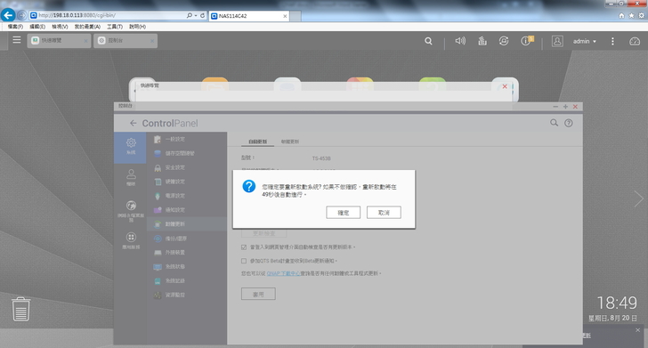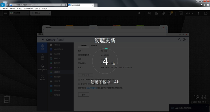 ▲ 網頁登入後,若偵測到有新的韌體會跳出提示,可執行下載更新