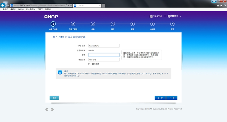 ▲ 設定 NAS 名稱以及設定 admin 密碼