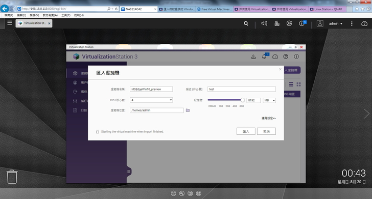 系統接受 ova,ovf,vmx 或 qvm 四種虛擬機檔案格式