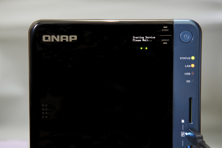 ▲ 整個硬體都安裝好後,就可以準備開機了!按下電源鍵開機,此時 TS-453B 就會開始先載入驅動程式