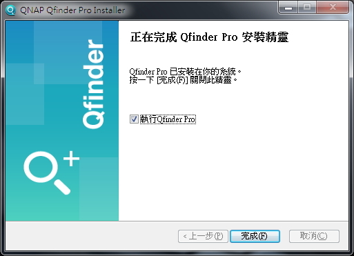 ▲ 軟體已安裝完畢,是否要馬上執行 Qfinder Pro