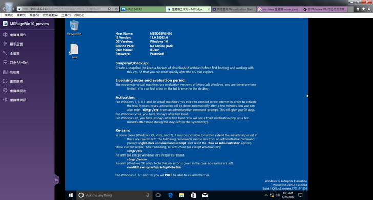 (帳號:IEUser,密碼:Passw0rd!)