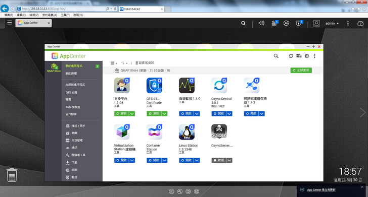 ▲ 可切換至 HD Station 套件頁面,觀察各軟體安裝情況