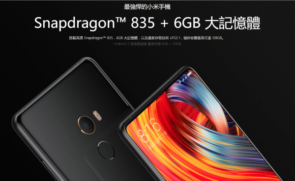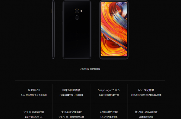 小米台灣官方這次給予現在所有參加活動的米粉朋友們,產品小米Mix2-6G+128GF碼