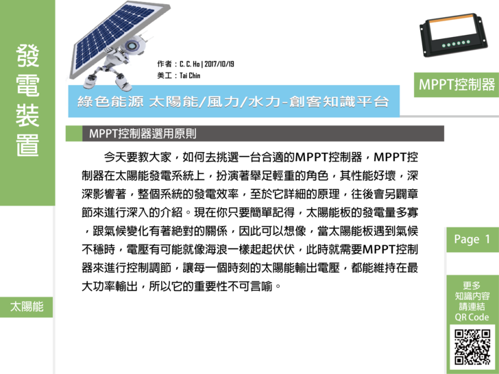 更多綠能知識影片內容(綠能發電-太陽能,風力,水力),歡迎加入綠色能源 太陽能/風力/水力-創客知識平台粉絲團