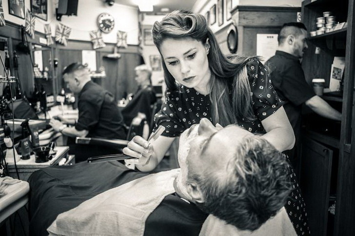 理髮師擁有精湛的刮鬍技巧,同時還有各種工具來完成這項工作。在使用熱毛巾軟化鬍鬚和臉部肌膚後,理髮師會在顧客臉上塗抹刮鬍泡沫,用來軟化鬍鬚和潤滑肌膚。然後,理髮師會借由手指與客戶皮膚的接觸,並以手腕作為樞軸,巧妙的在鋒利的刀片上施加適當的壓力進行刮鬍,這需要長期經驗與技巧。最後顧客會擁有乾淨又水噹噹的肌膚。這是一個奢華、輕鬆的體驗,但是昂貴又耗時,而且很難在家中複製。就像美容/美髮/SPA 之於女人一樣,刮鬍修面是過去繁忙男人閒暇時最好的消遣方式,也是某程度的社交活動。聊聊天氣,聊聊新聞,閉目享受理髮師周到的服務。從店裡再走出,就是一個“改頭換面”的乾淨紳士,何樂而不為?維克多雖然沒有遇上這個年代,但是光用想像就覺得很舒服。