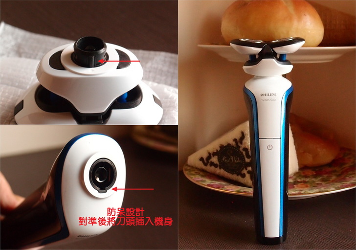遵照廠商的指示,對準卡榫的位置,飛利浦U-tube S566刮鬍刀組合完成!